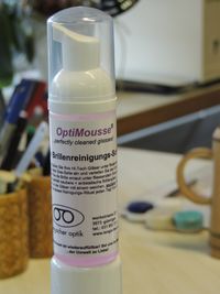 Dieses neue Mittel aus Deutschland reinigt die nasse Brillenfassung mit einem Schaum, auch in den Randbereichen, auch bei randlosen Brillen sehr geeignet. Das Beschlagen der Gläser wird so ein wenig reduzuiert. Antistatische Wirkung = Gläser sind länger vom Schmutz geschützt.